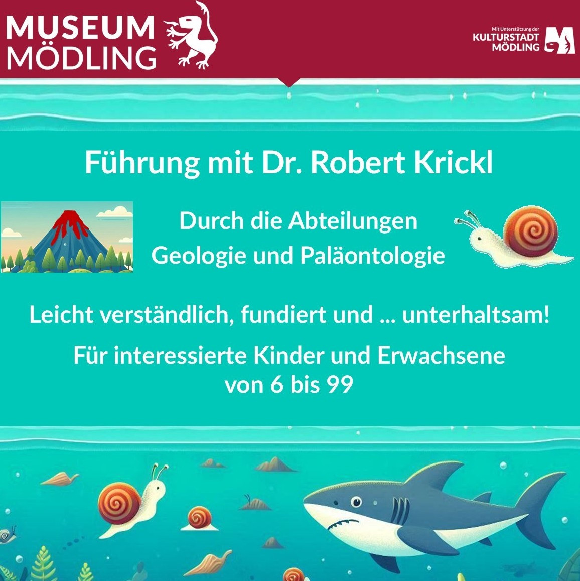 Ausstellungen im Thonetschlössl - Museum MödlingDr. Robert Krickl, bekannt durch diverse Schulworkshops und die Brunner Mineralientage, führt interessierte Kinder und Erwachsene leicht verständlich, fundiert und unterhaltsam durch die Geologie- und Paläontologieabteilung des Museum Mödling.