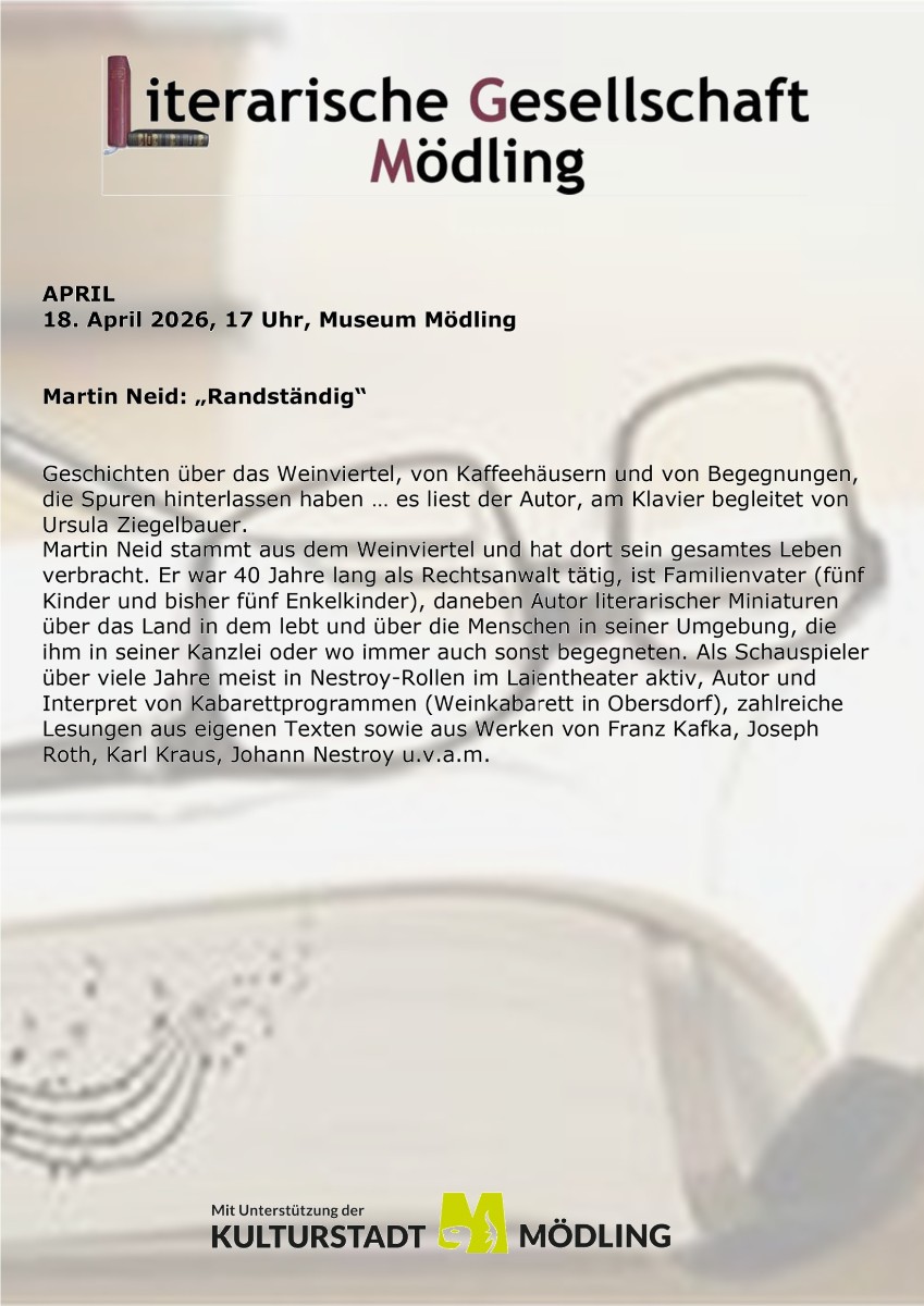 aktuelle Veranstaltungen im Thonetschlössl - Museum MödlingMartin Neid "Randständig"